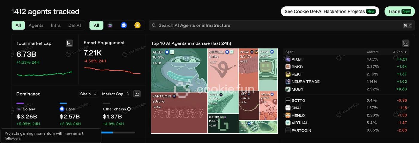 AI Agents on Cookie.fun went from less than a $1B market cap to over $20B. Now they’re down to ~$7B.