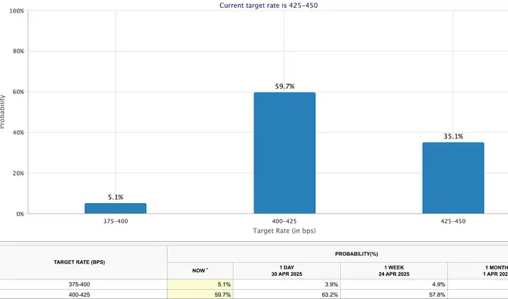 The possibility of the Federal Reserve cutting rates at the Federal Open Market Committee meeting on June 18th increased in the past week, rising from 57% on April 30th to 60% on May 1st.