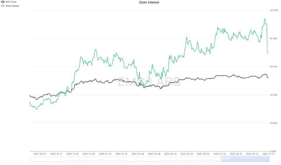 After the BTC price hit a new high on the 6th, the open interest reached a historical high of more than US$94 billion, triggering a series of long positions being liquidated during the sharp price drop, amplifying the decline.