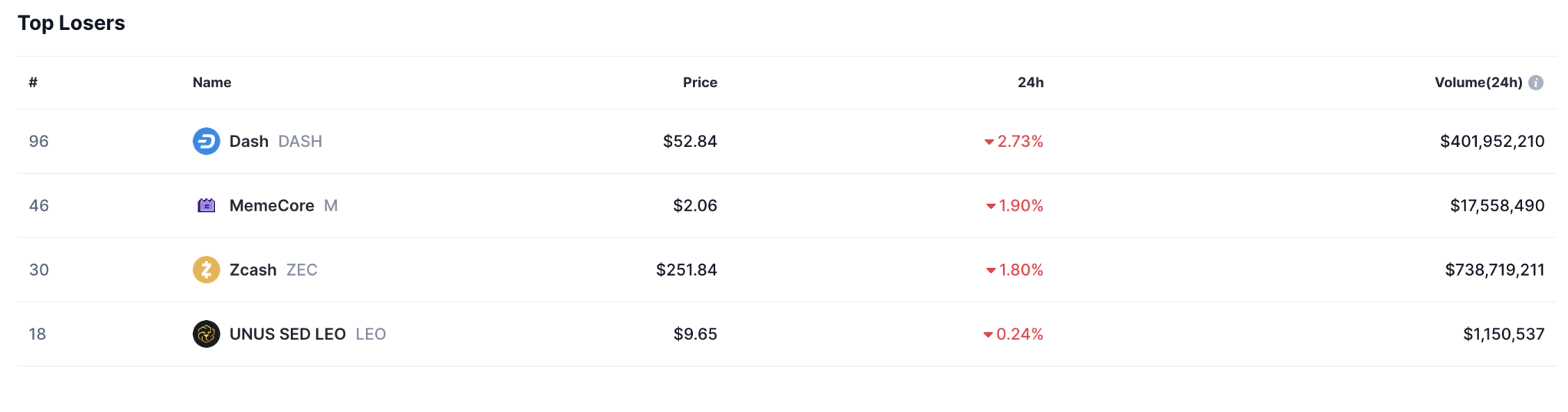 On the other hand, according to Coinmarketcap data, the biggest losers in the last 24 hours are as follows: Dash (DASH) in first place with a 2.7% loss, MemeCore (M) in second place with a 1.9% loss, Zcash (ZEC) in third place with a 1.8% loss, and LEO in first place with a 0.2% loss.