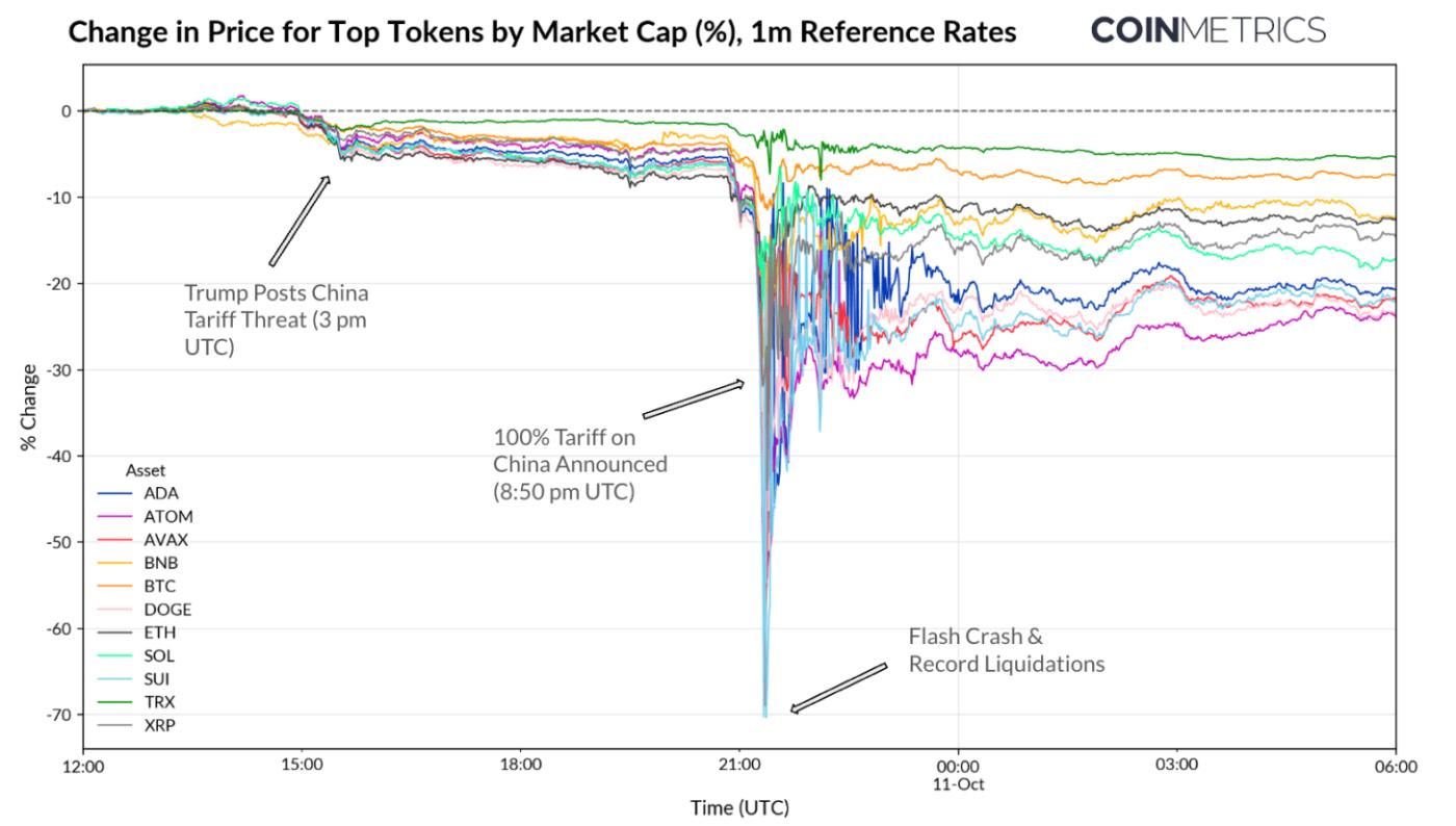 24/7 Market Reflexivity: Crypto’s around-the-clock trading allowed shocks to unfold in real time. With no circuit breakers volatility was amplified, particularly during thin weekend liquidity.