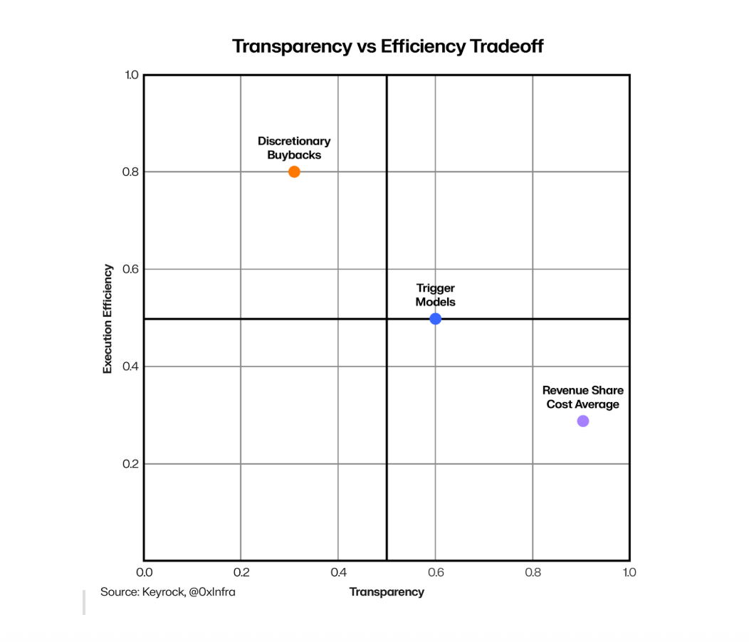 The report also highlighted three execution tactics once a protocol decides to run buybacks: programmatic, discretionary, and trigger-based.
