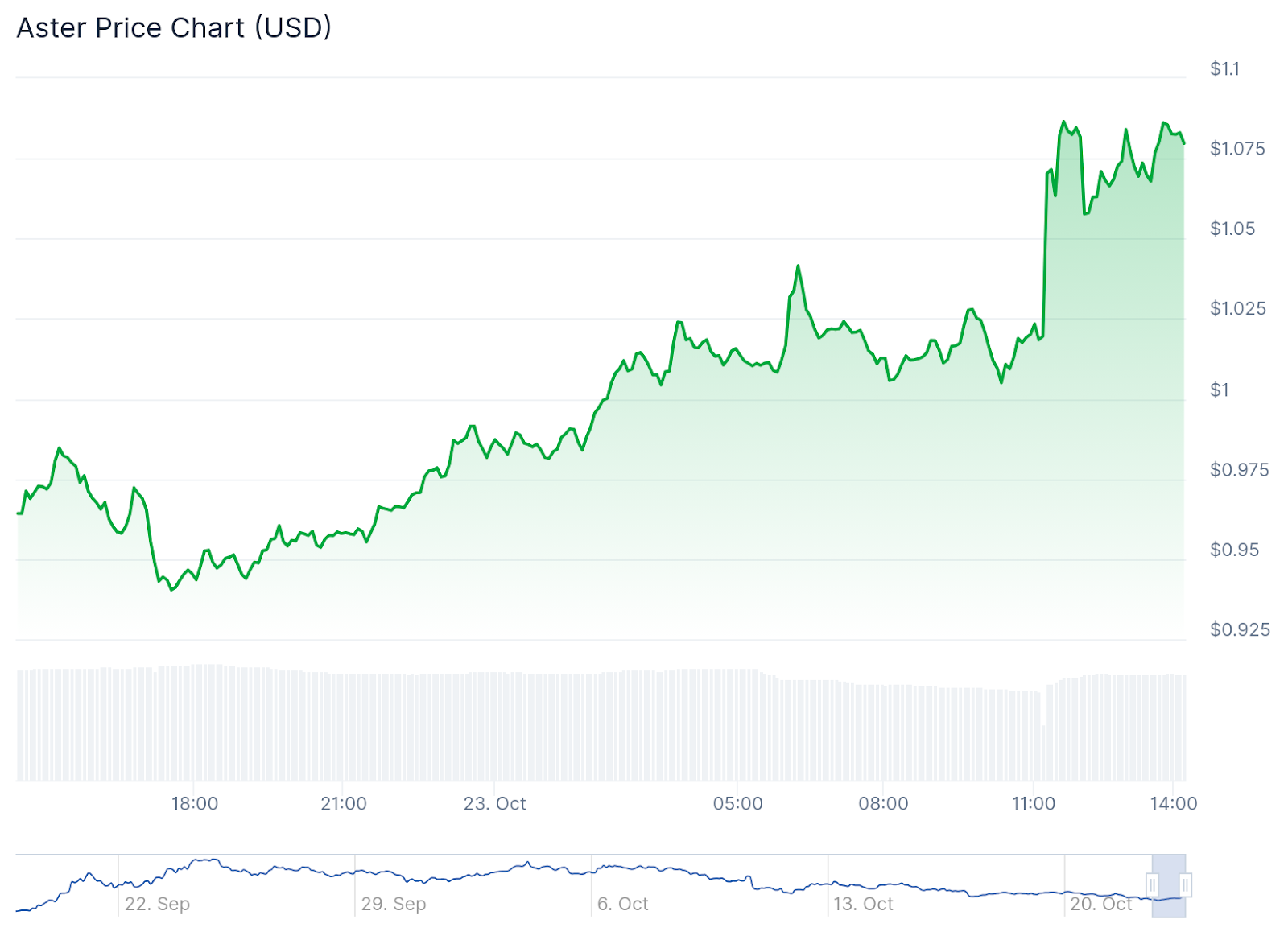 ASTER is up 8% since the announcement, and up 12% over the last 24 hours, driven by the market’s rebound today and potentially the new ASTER-aligned incentives program. Despite the bounce, the token is still down 16% over the last week, and 55% from its all-time high set in September.