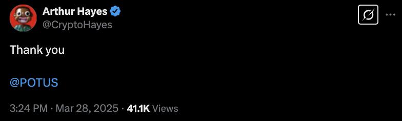 Unlike other high-profile pardons like Ulbricht or Kurson, the White House did not issue a statement explaining why. BitMEX did not comment either. Hayes only wrote a simple “Thank you” public post on X.
