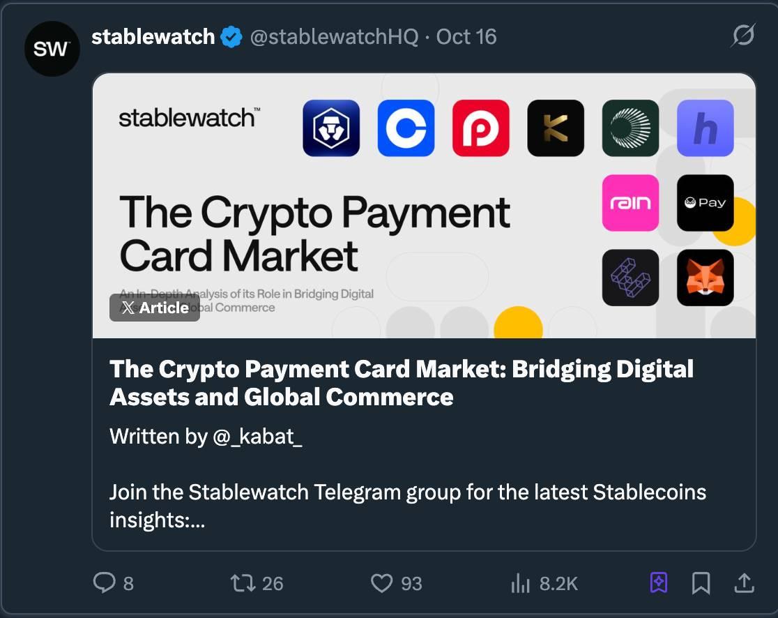 @stablewatchHQ provides an in-depth analysis of this bridging mechanism, defining it essentially as a "Card-as-a-Service" (CaaS) model. This is a crucial point that many people overlook when discussing crypto cards. These CaaS platforms provide the infrastructure for issuing private-label cards.