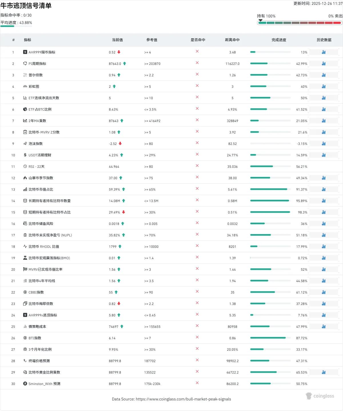 This week, the top-selling indicator did not trigger any alarms, but the proportion of short-term BTC holders has increased significantly, approaching the warning threshold, so the risk of a short-term pullback should be noted. In terms of funding rates, most Altcoin still have negative rates this week, but overall there is a marginal improvement trend, and market speculative sentiment has warmed up somewhat.