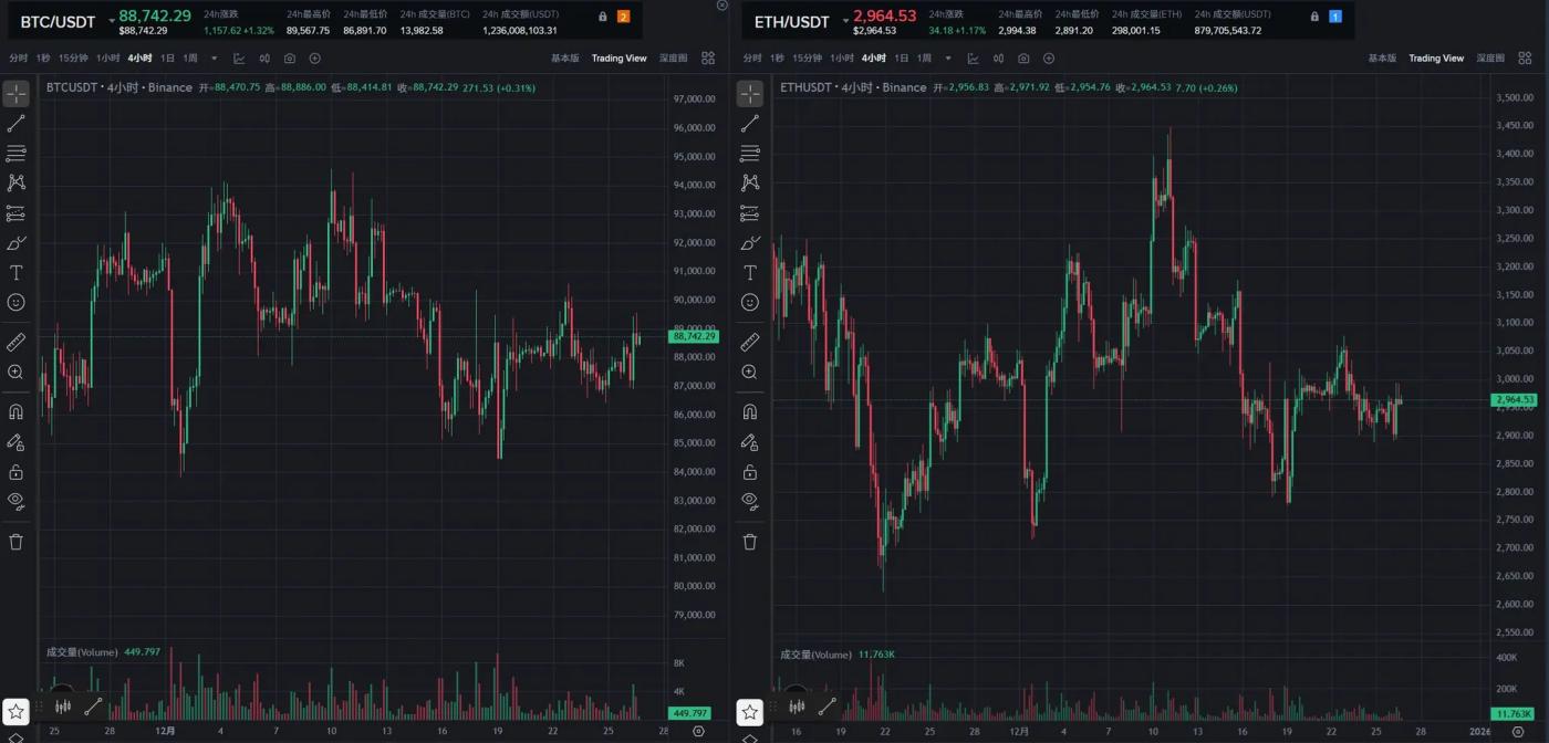 Last week, the market trended downwards, and the $85,000 technical support level we previously emphasized proved effective. After BTC touched a low of $84,500 on Friday, it began a rebound this week. From the daily and weekly charts, the $85,000 support level was validated after the previous continuous decline, and the market maintained its rebound momentum over the weekend, showing an overall pattern of fluctuating upward movement.