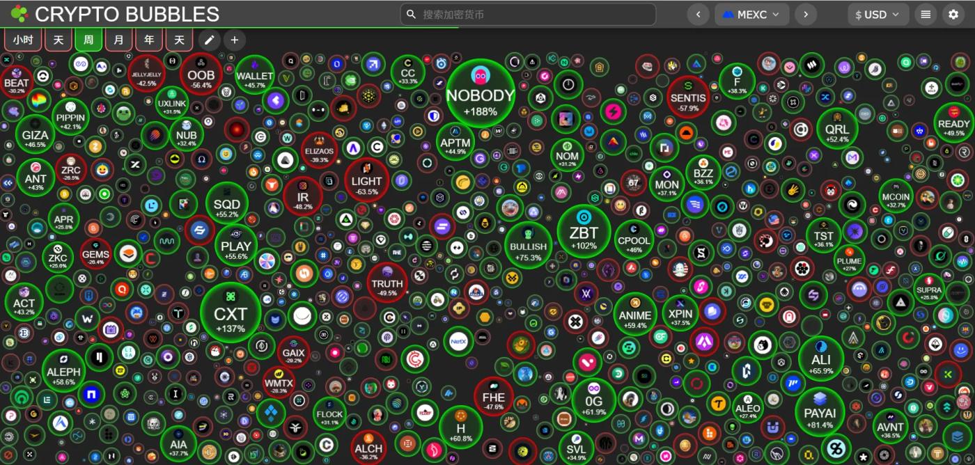 This week, the altcoin market was generally volatile, with some tokens bucking the trend and rising. Benefiting from a marginal improvement in stock market sentiment, the short-term sentiment and downside potential of the crypto market received some support. The best-performing tokens were mainly small-cap MEME tokens and highly recognizable trending tokens, but the momentum was weak and it was difficult to form a sector-wide联动效应 (linkage effect).