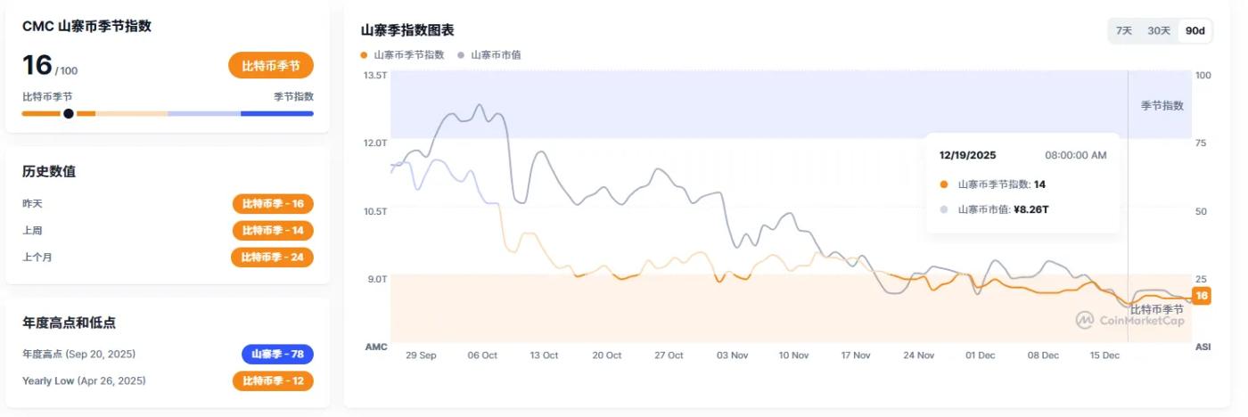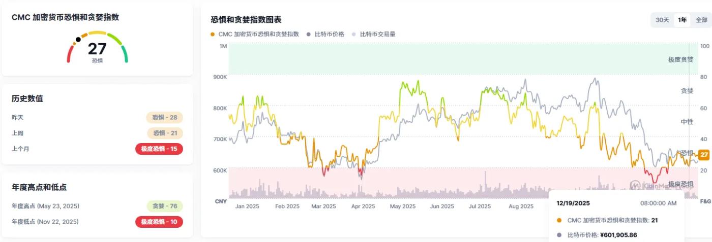 This Friday, the altcoin index was 16, with major Altcoin maintaining low-level fluctuations and market trading activity remaining sluggish. The market sentiment index rebounded to 27, showing some improvement from last week, with individual Altcoin performing actively, but overall market enthusiasm was insufficient.