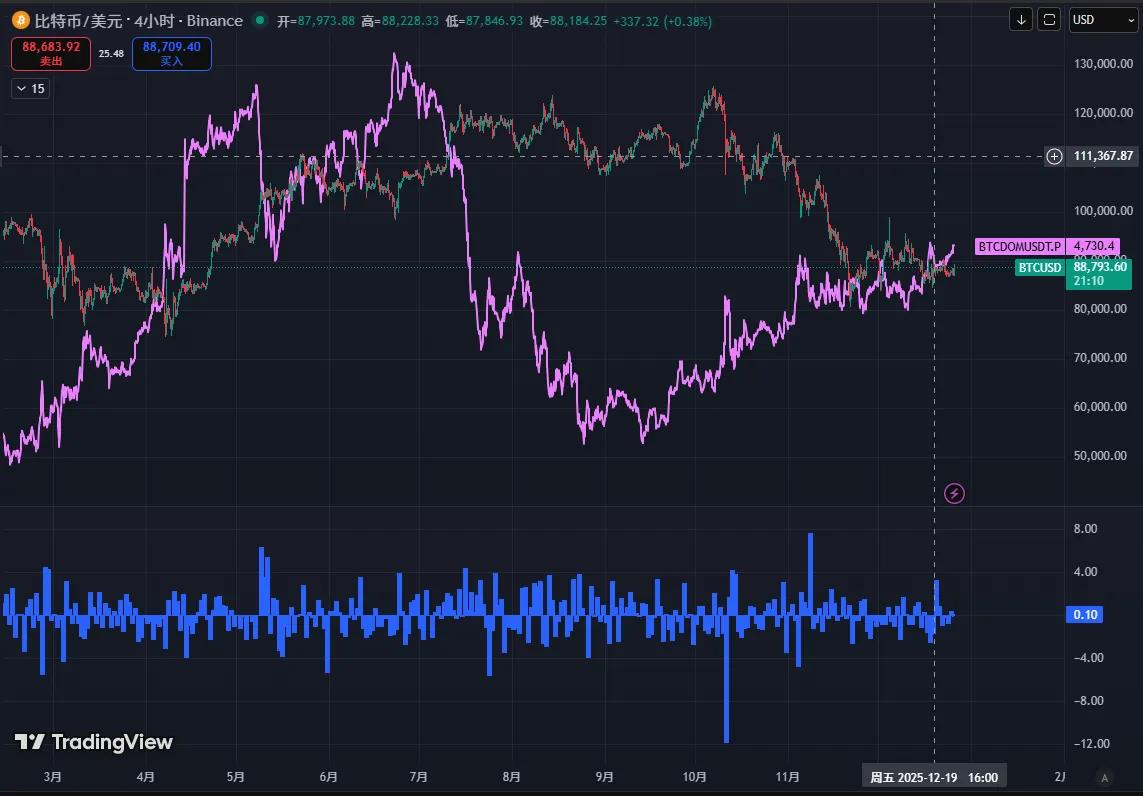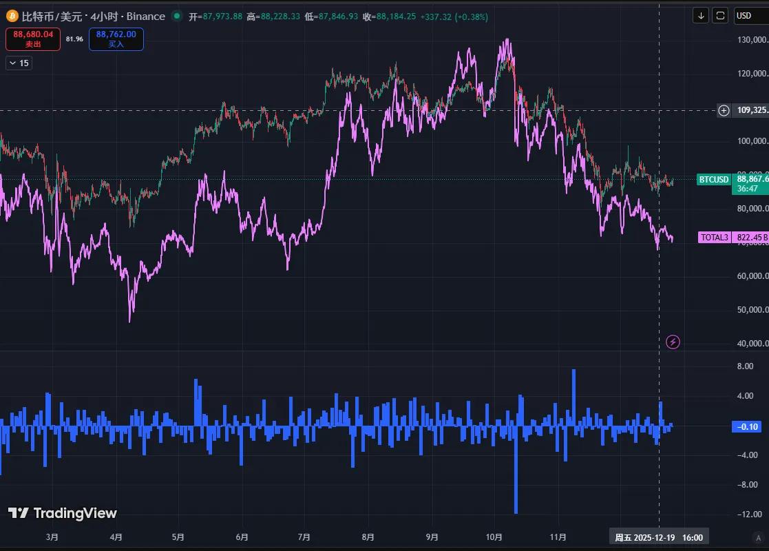 This Friday, the total market capitalization of all tokens (excluding BTC and ETH) reached $822.3 billion, a 1.95% increase week-over-week. BTC traded in a narrow range around $88,000 this week, with low volatility. Despite the continued rebound in US and Chinese stocks, BTC did not follow suit, while the commodity market performed strongly. From a fund flow perspective, BTC remains at the bottom of the traditional financial allocation system, and in the absence of significant new capital inflows, it is likely to maintain range-bound trading.