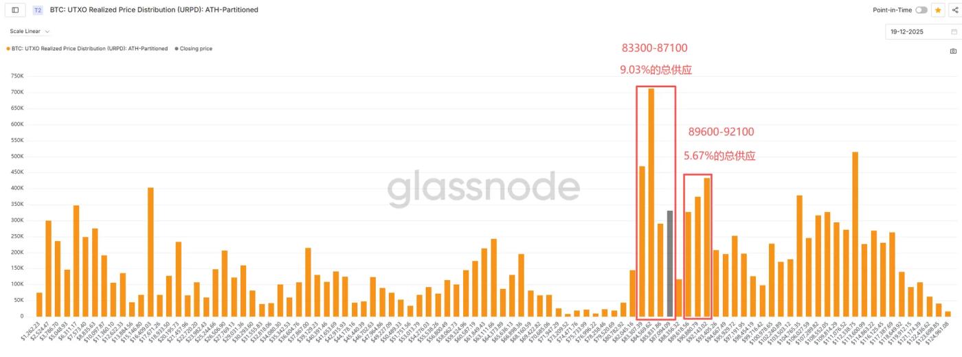 In terms of BTC supply structure, the accumulated supply in the $83,300-$87,100 price range increased from 9.03% to 9.93% of the total supply, a rise of 0.9 percentage points. Specifically, the supply accumulation around $87,100 reached 3.15% of the total supply, showing significant turnover compared to last week, indicating intense competition between bulls and bears. This price level is expected to form strong support in the future.