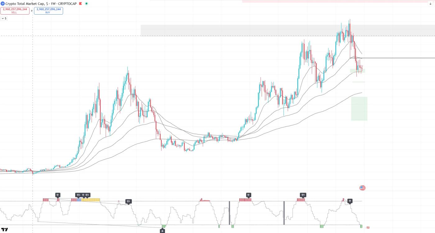This week, the total market capitalization of the crypto market fell back to around $3 trillion, precisely testing the weekly EMA100 moving average. Current indicators have shown weekly oversold signals, and considering the historical performance of weekly oversold signals since 2021, from a technical perspective, the market has the potential for a rebound.