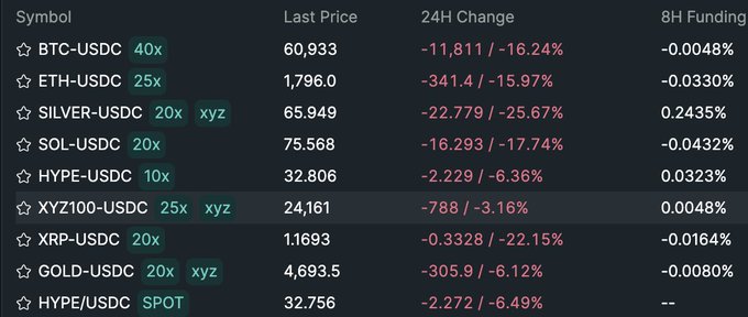 The Morning Minute (2.6) Powered by @yeet ⏰Top News: -Crypto majors crash on Thursday as BTC hits $60k before rebounding -HYPE / BTC hits new ATH as Hyperliquid’s token holds strong -JPMorgan says BTC could be a stronger play than Gold now post-selloff -Polymarket’s parent company filed a trademark for $POLY, outlines token plans -Rainbow Wallet’s RNBW token debuts at $34M fdv 🌎 Macro Crypto and Markets -Crypto majors are very red another 5-8% after another brutal selloff that saw BTC go to $60k; BTC -5% at $66.3K; ETH -7% at $1,920; SOL -9% at $82; XRP +1% at ~$1.37 -QNT (+5%), HYPE (+4%) and FLR (+7%) led top movers -The HYPE / BTC ratio hit a new ATH as Hyperliquid held strong during the Bitcoin crash -JPMorgan said Bitcoin could be “more attractive” than gold over time as a store of value, despite the current rout -Bitcoin mining stocks are approaching crisis as BTC trades near the $60K-$80K production cost range; mining difficulty expected to drop 13% Saturday. -Gemini is cutting 25% of staff and exiting UK, EU, and Australia; accounts close Apr 6 Corporate Treasuries & ETFs -The BTC ETFs saw $434M in net outflows while the ETH ETFs saw $80M -Strategy reported a $12.4B Q4 loss as BTC fell below its $76K average cost; MSTR down 76% from November peak -Tom Lee’s BitMine hit a 7-month stock low with $8B in unrealized losses on its Ethereum holdings Meme Coin Tracker -Meme majors were mostly red down 3-5%; DOGE -5%, SHIB -4%, PEPE -5%, TRUMP -17%, FARTCOIN -3% -BigTrout (+88%), arc (+23%), Buttcoin (+43%) and WhiteWhale (+30%) were notable movers 💰 Token, Airdrop & Protocol Tracker -Polymarket’s parent company filed a trademark for POLY and $POLY, including plans for a token -Rainbow’s RNBW token opened at a $34M fdv in its first day of trading ($7M market cap) 🚚 What is happening in NFTs? -NFT leaders rallied in ETH terms despite ETH falling; Punks +11% at 29.9 ETH, Pudgy even at 4.17 ETH, BAYC +8% at 5.8 ETH; Hypurr’s -2% at 476 HYPE -MAYC (+8%) and Moonbirds (+7%) led notable movers -CryptoPunks saw 30+ sales yesterday amidst the carnage, showing strong support at the $50k level
