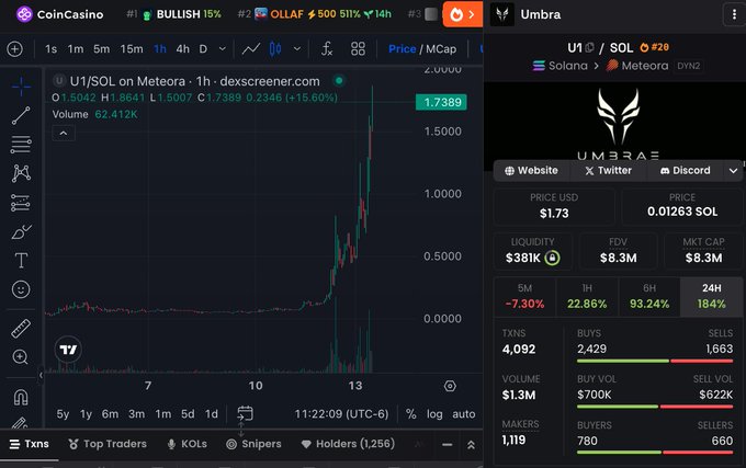 UMBRA is up 20x over the past 2 days Now at $1.70 and $8.6M mc