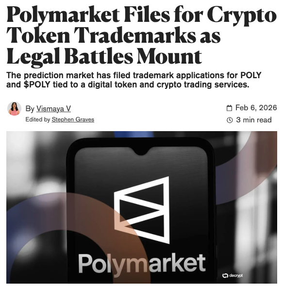 ICYMI: Polymarket's parent company filed trademarks for POLY and $POLY yesterday Including trademark protection for “cryptocurrency services, financial trading platforms, and blockchain-based payment systems.” Looks like the token is a matter of when at this point, not if...