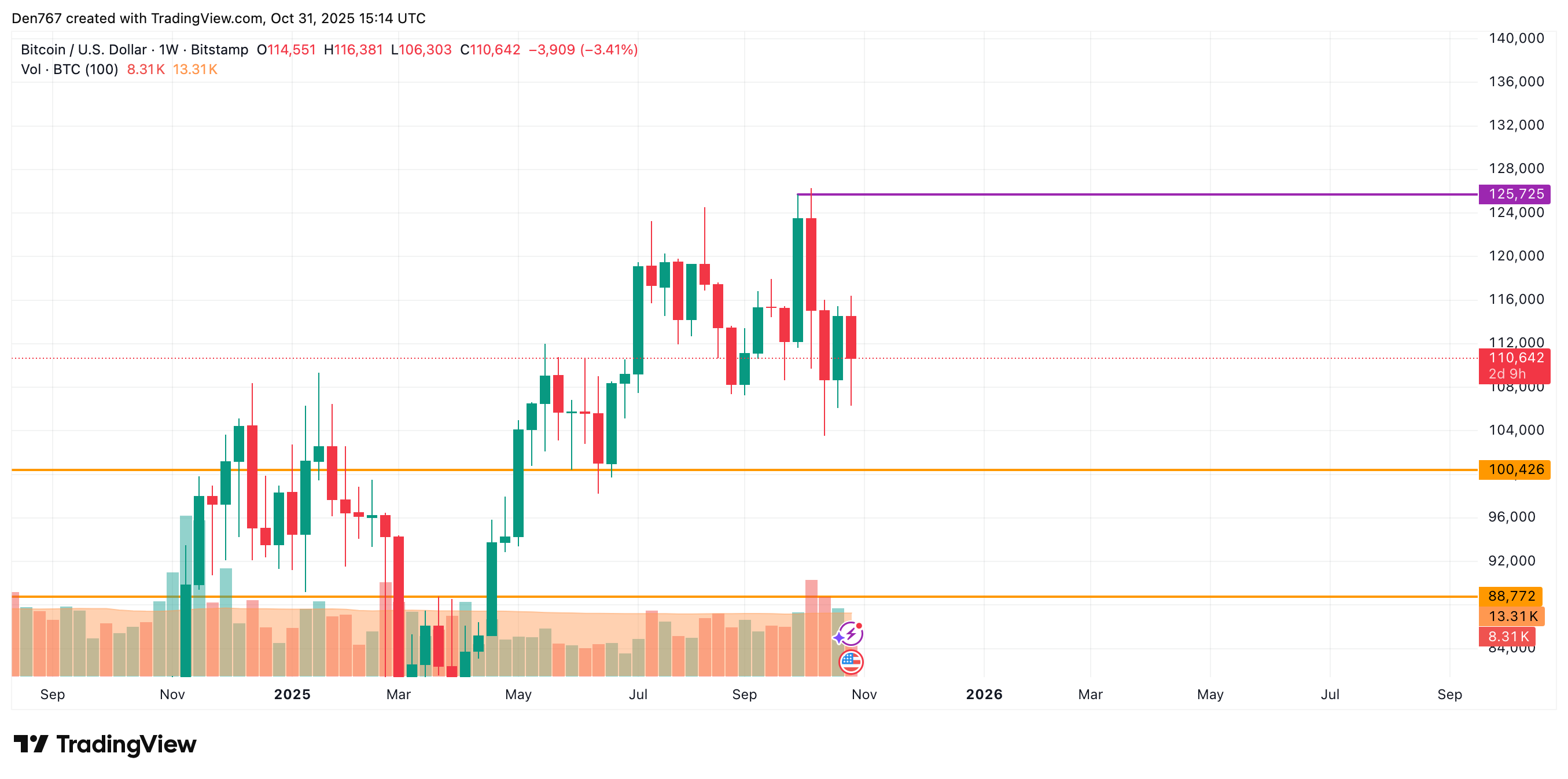 在这种情况下,最有可能出现的情况是在 110,000 美元至 112,000 美元区间内横盘整理。