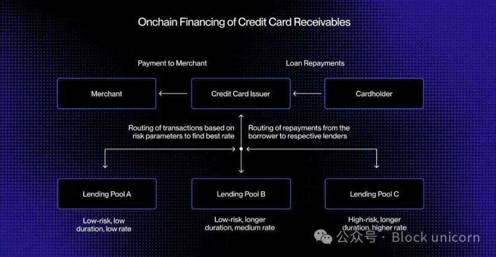 想象一下,一位消费者购买了价值 5,000 美元的商品。交易立即获得授权。在与 Visa 或 Mastercard 结算之前,发卡机构会将应收账款在链上代币化,并从去中心化信用池中收到价值 5,000 美元的 USDC。结算完成后,发卡机构会将这些资金发送给商家。